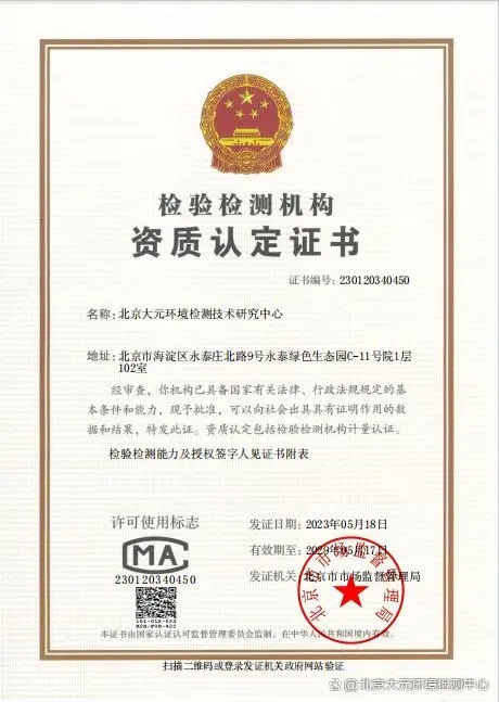 大元环境检测还提供一对一的咨询服务,帮助客户了解检测过程中的各种疑问,并根据检测结果提出针对性的空气治理建议。 无论是新房装修后的甲醛清除,还是日常居住环境的空气质量改善,大元都能给出科学合理的解决方案。 值得一提的是,大元环境检测在行业内享有良好的口碑,其出具的检测报告具有法律效力,被众多企业和家庭所认可。 公司拥有国家认证的资质证书,严格执行国家关于环境检测的相关标准和规定,确保每一次检测都是公正、客观的。 面对市场上众多的甲醛检测公司,消费者在选择时往往会感到困惑。 在这一点上,大元环境检测凭借其专业的态度、严谨的工作方式以及优质的客户服务,成功地树立了行业的标杆。 它不仅仅是一个检测机构,更是守护家庭健康、提升生活品质的重要力量。 当北京的家庭或企业需要室内空气质量检测时,大元环境检测是一个值得信赖的选择。